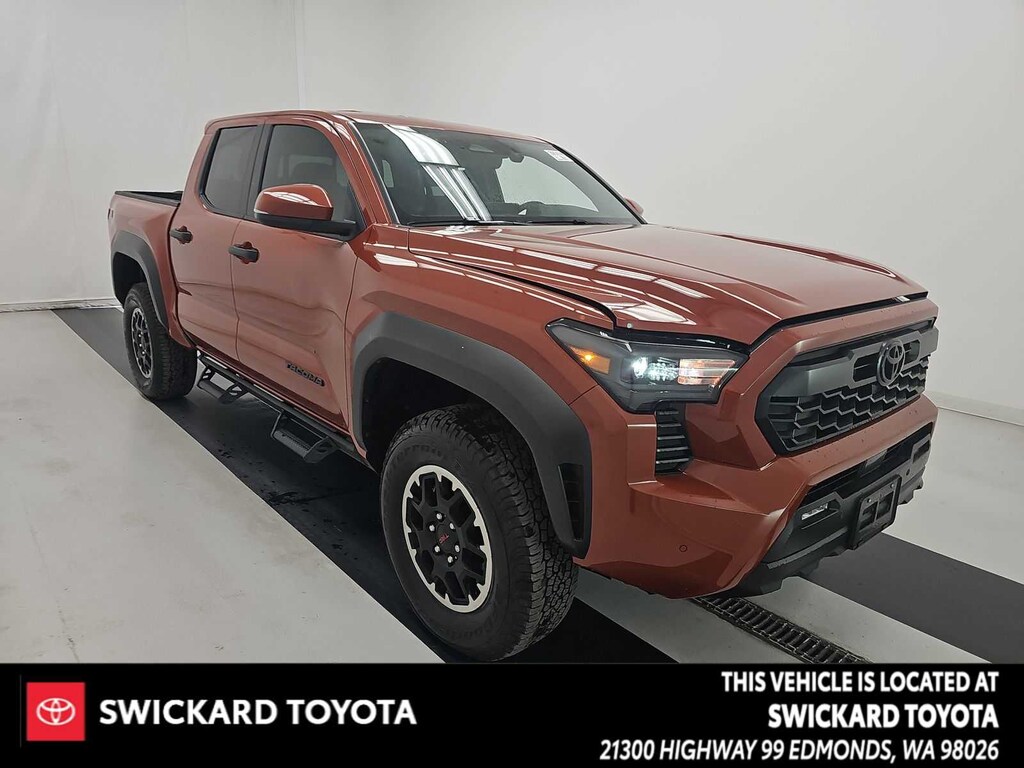 TRD OFF ROAD UPGRADE PACKAGE HomeLink Universal Transceiver, Integrated Trailer Brake Controller, multi-information display (MID) screen and trailer brake type, gain and manual trailer brake output controls, Pre-Wire Accommodation (Bed Power Port), Deck Storage Box, Heated Leather-Trimmed Steering Wheel, Power Horizontal Rear Window, 120V/400W AC Power Inverter, Heated Front Seats, Smart Key w/Digital Key Technology, Digital key enables smartphone to be used instead of a physical key (Remote Connect subscription required), JBL Premium Audio, 10 speakers w/JBL FLEX portable Bluetooth® speaker, subwoofer and amplifier, Low Auxiliary (30A) Switches, 8-Way Power Driver & Passenger Seat Adjusters, ON-OFF FRONT STABILIZER DISCONNECT MECHANISM, PREDATOR DROP STEP (GST) (R6), RADIO: PREMIUM AUDIO W/14 DISPLAY (EF) TRD upgrade, touchscreen, wireless Apple CarPlay® and Android Auto® compatibility and SiriusXM w/3-month Platinum Plan trial subscription, See toyota.com/audio-multimedia for details, NON-SKID SPRAY-ON BED LINER (GST), INTEGRATED DASH CAM (GST), ARB REAR TOW HOOKS (GST), VEHICLE PROTECTION PACKAGE (GST): paint renewer cleaner, paint sealant and fabric guard, BLACKOUT PACKAGE (GST): black badge overlays and black tailgate insert, CONNECTIVITY KIT (GST), 4x4, Back-Up Camera, Turbocharged, iPod/MP3 Input, Onboard Communications System The Swickard Toyota experts are committed to providing exceptional service to our guests, along with our quality new and pre-owned cars, trucks, and SUVs in Edmonds, WA. Our goal is to help you and your family find a vehicle that checks all your boxes, while still honoring your budget.
